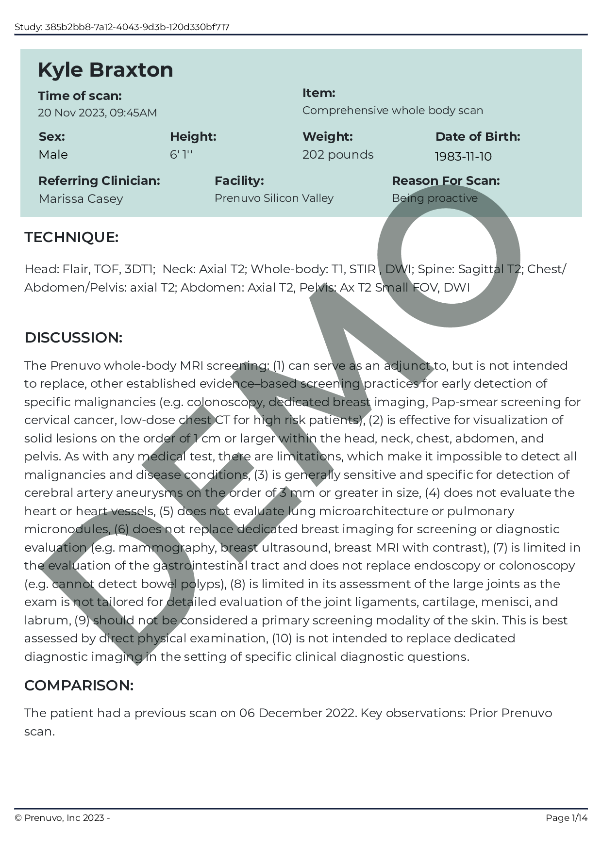 If you require, we can arrange a referral from an independent medical practitioner at no cost to you. It may seem like an unnecessary requirement, but it exists to look after you in the event there is a serious medical finding. A medical practitioner can additionally assist you in understanding and contextualizing the findings in your Prenuvo scan report.